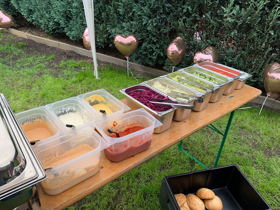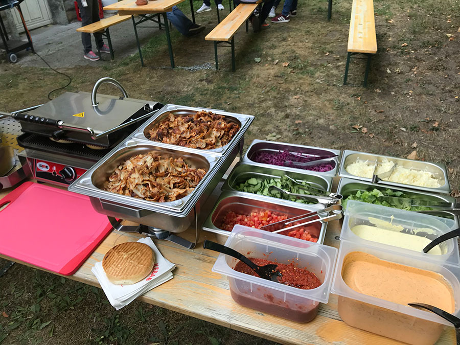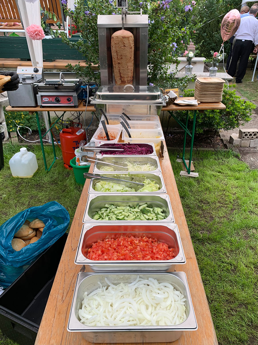 Das Beste am Dönergrill Mieten in Hamburg haben wir Ihnen noch gar nicht verraten: Mit dem Dönergrill vor Ort kann jeder Ihrer Gäste sein eigenes Meisterwerk kreieren. Die Bedienung am Grill ist in wenigen Handgriffen erlernbar, sodass Ihre Gäste sich ihren Gyros oder Döner selbst zubereiten können. Brot toasten, das köstliche Grillfleisch zum perfekten Zeitpunkt vom Dönerspieß schneiden und die Soßen und Salate in genau der richtigen Menge zusammenstellen – das macht den unterschiedlichsten Menschen einen riesigen Spaß und wird nicht nur aus kulinarischer Sicht schnell zum Highlight Ihres Events.
